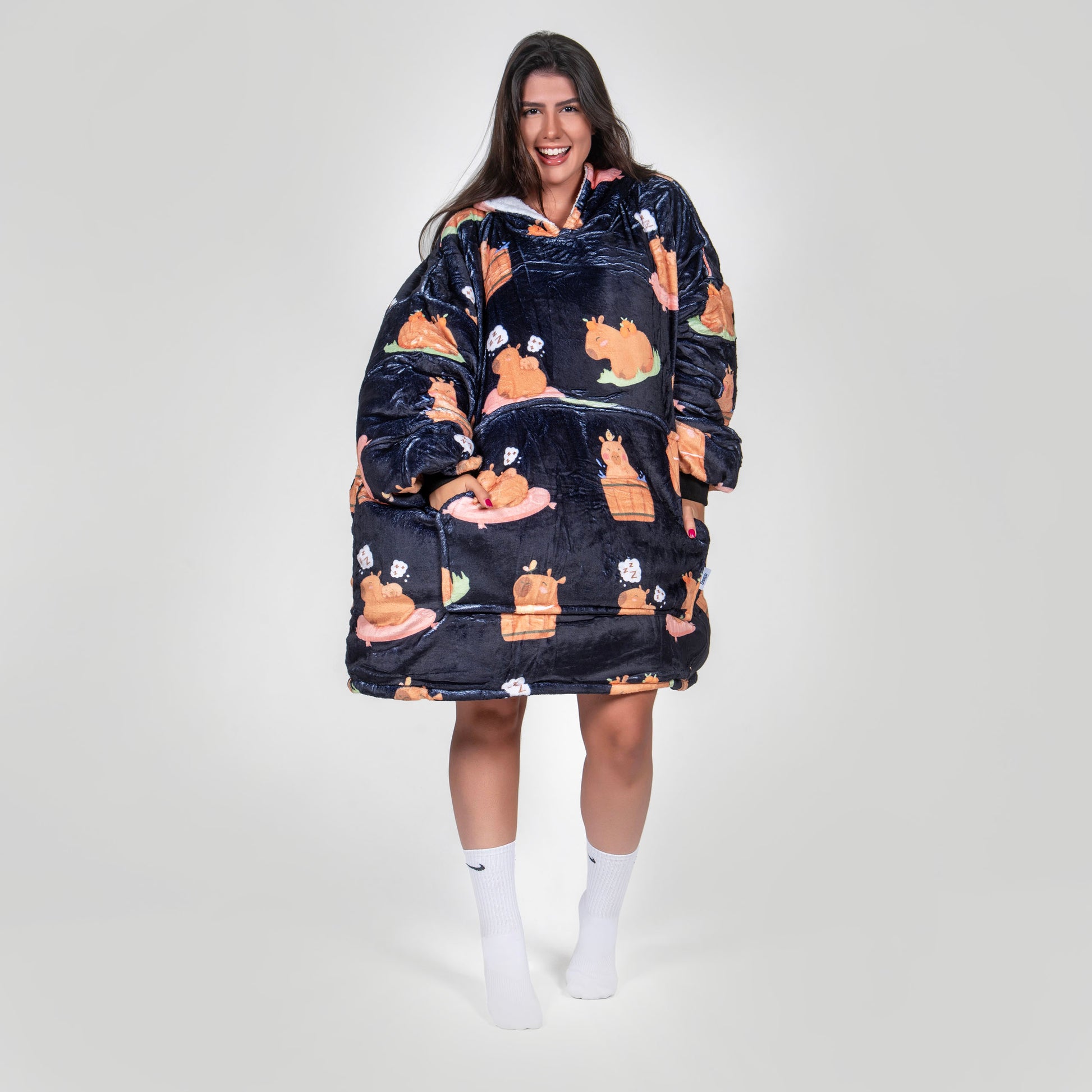 - Os Sleepos são oversized, com tamanho baseado em um moletom 6XL, vestindo bem qualquer tamanho e proporcionando maior conforto! Sem preocupações com o tamanho errado ou não servir!